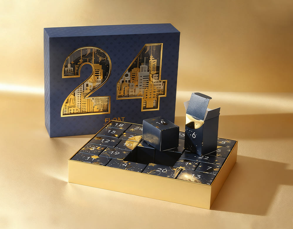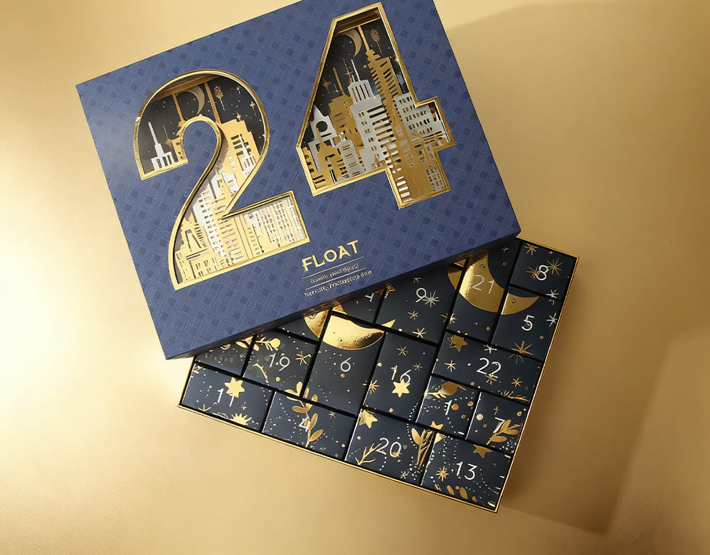 Fully Custom Packaging Solutions: Go beyond a standard box. We specialize in luxury custom packaging, including intricate die-cut designs like the stunning '24' on the lid, premium rigid box construction, and high-impact finishes like gold/silver foil stamping and embossing, ensuring your calendar stands out on the shelf.