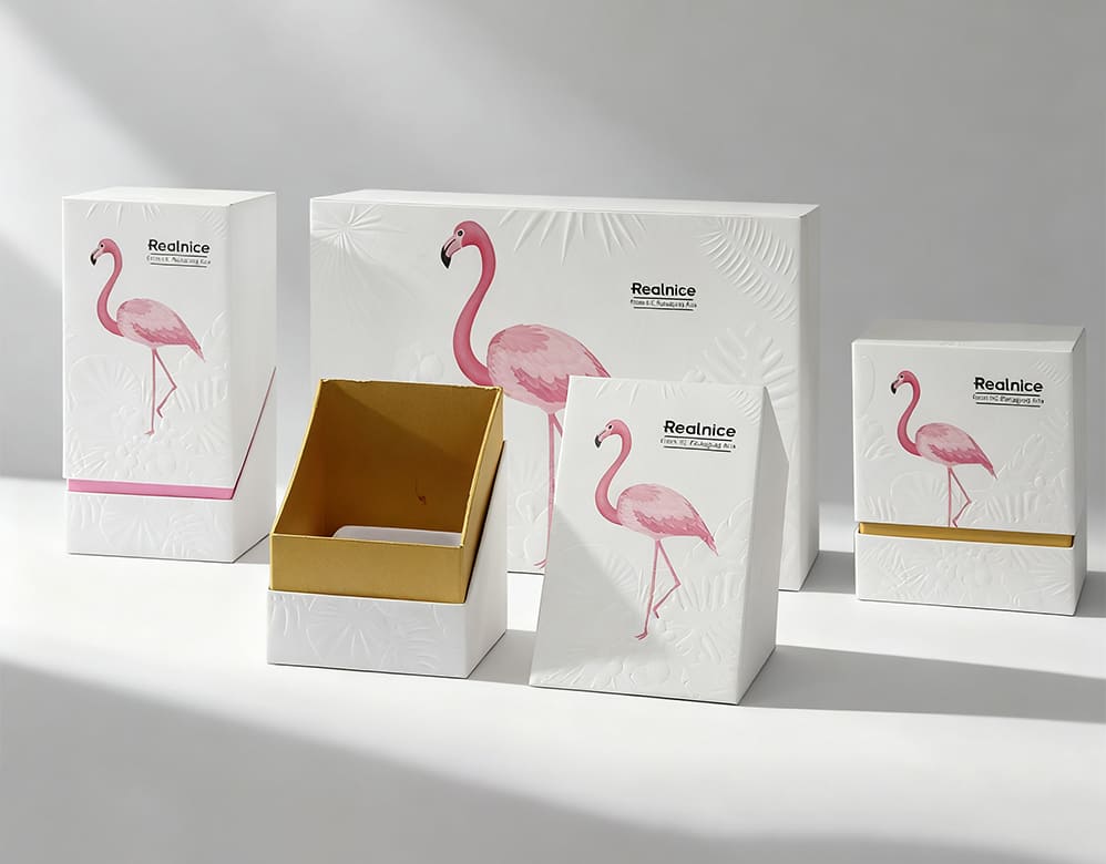 Cosmetic Packaging: Introduce your cosmetics and fragrances in packaging that screams luxury and sophistication. Our custom packaging solution for Realnice showcases the power of tactile design, perfect for high-end perfumes, skincare, and makeup kits.