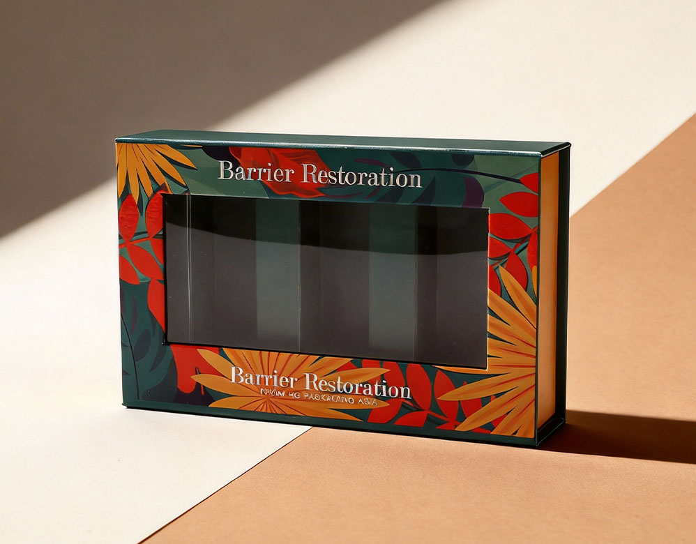 The combination of durable paperboard construction and high-quality printing ensures the packaging enhances brand value while protecting delicate glass bottles during shipping and storage.