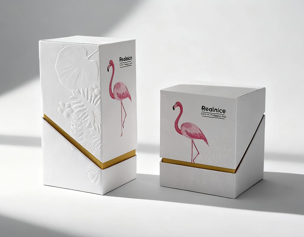 Cosmetic Packaging: Introduce your cosmetics and fragrances in packaging that screams luxury and sophistication. Our custom packaging solution for Realnice showcases the power of tactile design, perfect for high-end perfumes, skincare, and makeup kits.