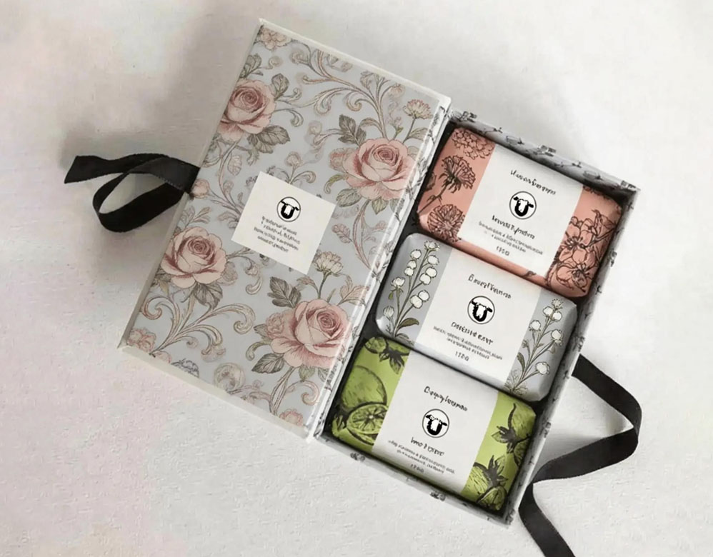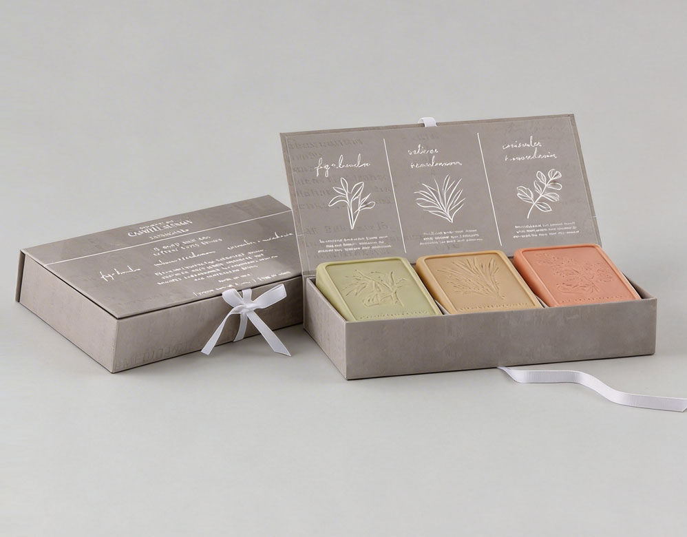 This book style soap gift box is designed to create a premium unboxing experience, featuring a rigid structure with ribbon closure. It is ideal for skincare sets, luxury soap collections, and branded gift packaging that requires both elegance and storytelling presentation.